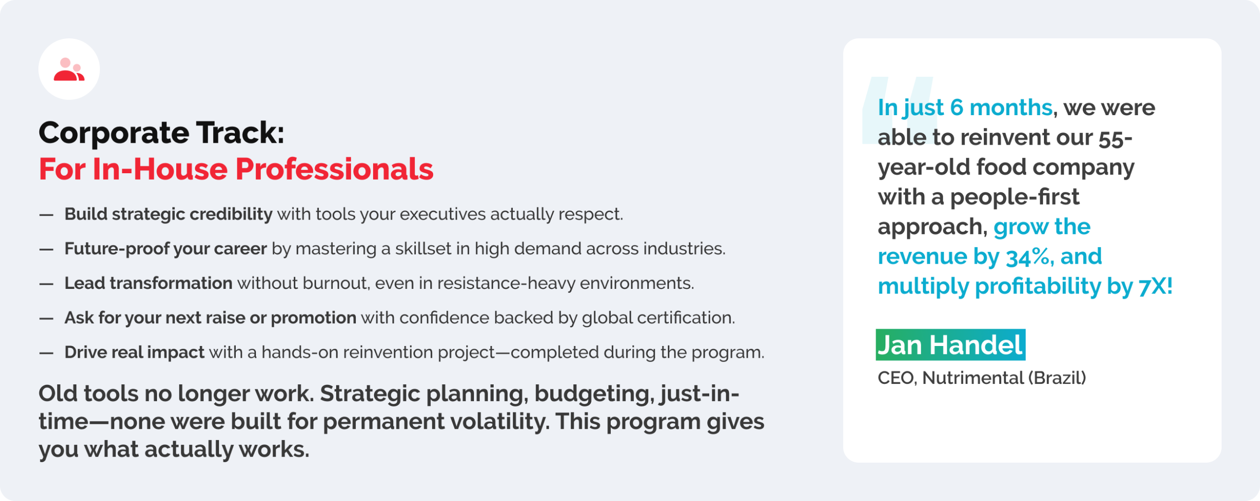 These are real professionals who’ve been exactly where you are—some working inside major corporations, others running thriving consulting practices. They’ve gone through the program, applied the tools, and seen the results.