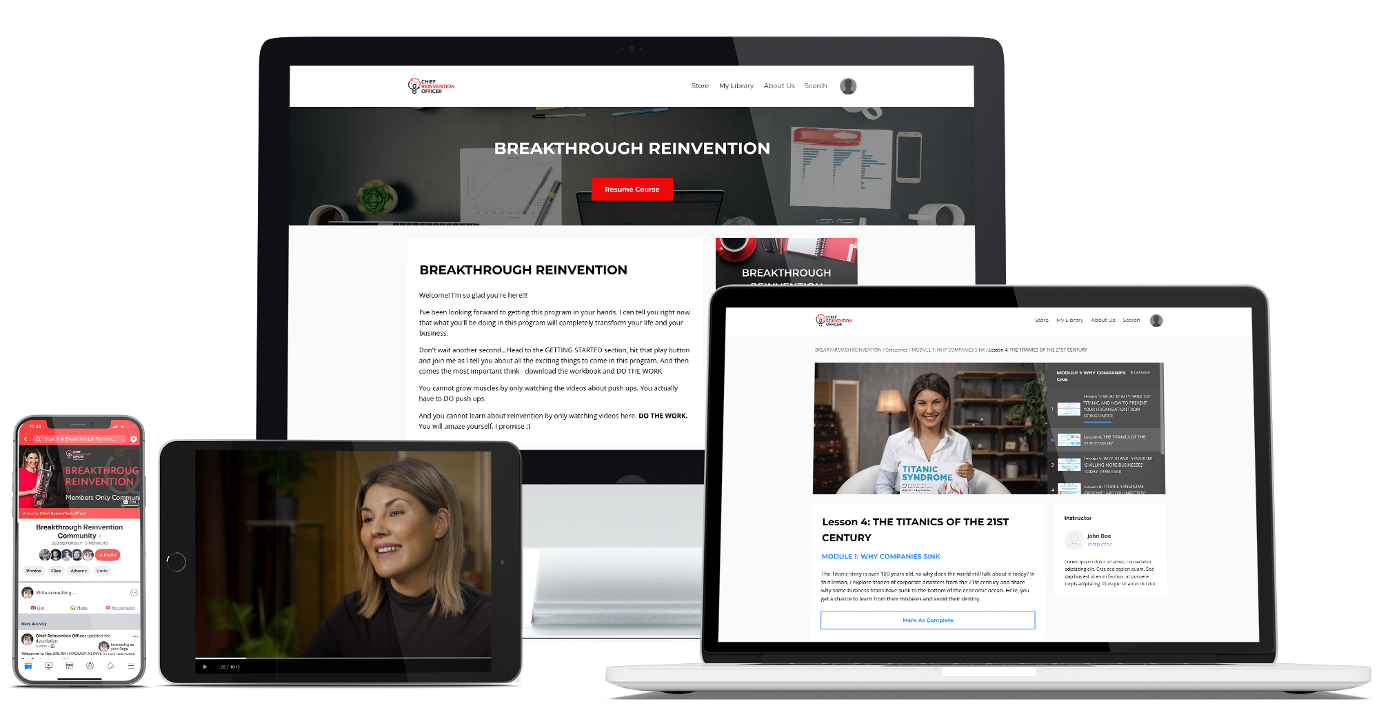 BREAKTHROUGH REINVENTION is an immersive 4-week online learning program that offers you a perfect opportunity to re-boot and reinvent. The core course includes extensive pre-recorded videos, an e-book, and hands-on assignments.