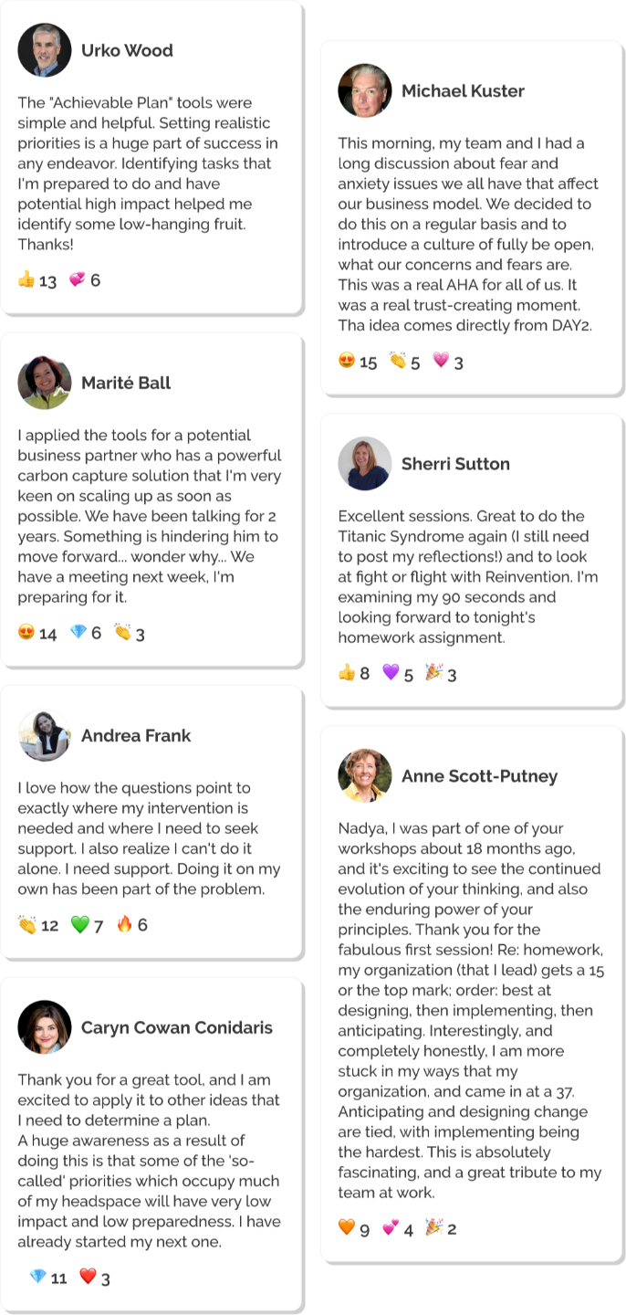 From consultants, coaches, and corporate leaders who used these tools to bring clarity, confidence, and momentum into their big transitions.